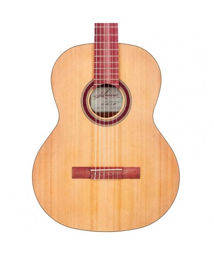 Sa table massive en Epicéa massif est associée à un dos et des éclisses en acajou africain pour une projection dynamique et une large réponse. Le manche en érable des Balkans assure une excellente stabilité et une brillance accrue. La touche et le chevalet sont en bois de violette, offrant un sustain prolongé et un style unique.